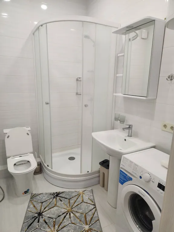 В квартире два раскладных дивана, кухня, санузел с душ-кабиной, стиральная машинка.