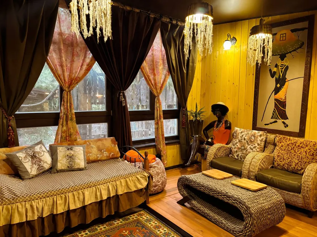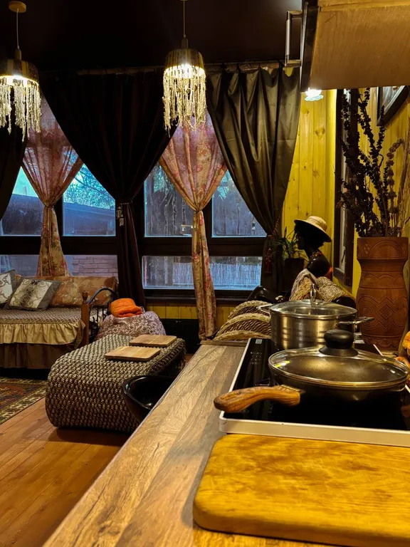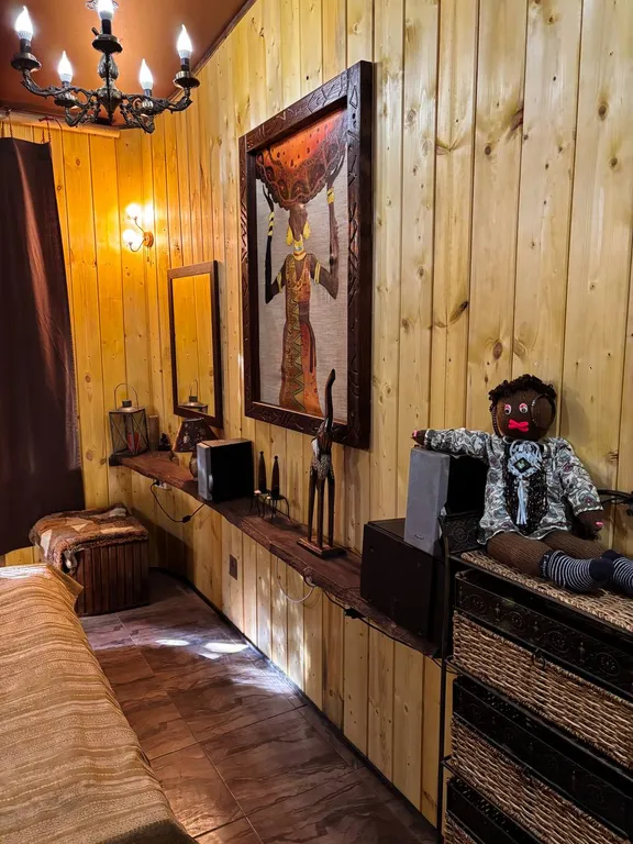 Состоит из отдельной спальни и кухни гостиной. В каждой комнате свой туалет и душ, телевизор. Есть стиральная машина. Фен, утюг. Кондиционер.