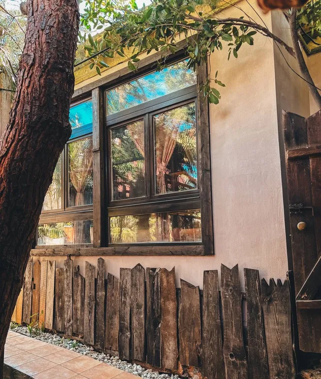Дача имеет уединенное расположение на территории гостевого комплекса, прекрасно оборудованной для отдыха. Бассейн с лежаками, зонтами и шезлонгами, мебель и гамаки под пальмами, мангал.