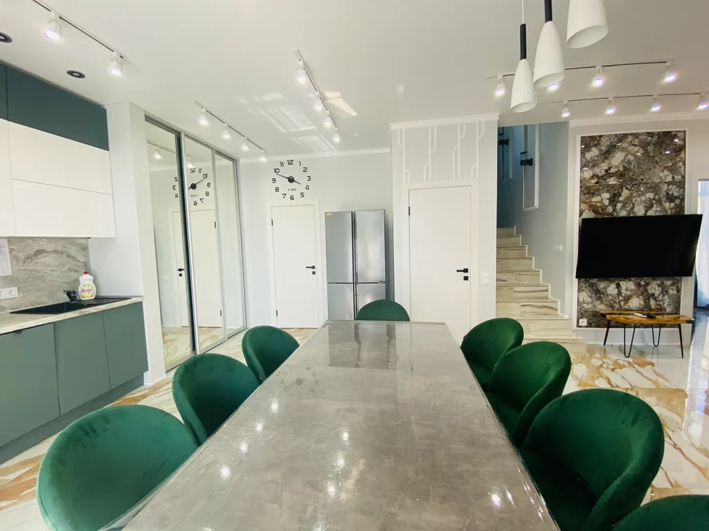 1 этаж - кухня гостиная, ванная, спальная комната.