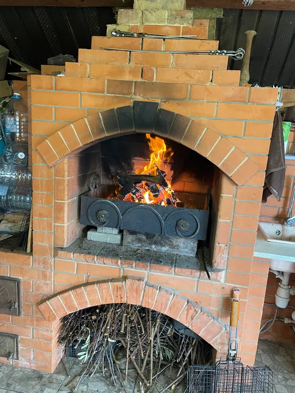 - Полноценная кухня в беседке. Плита, холодильник, микроволновка