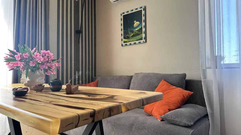 Уютный номер площадью 34 м². Современный дизайн продуман в деталях — здесь есть все необходимое для вашего комфортного пребывания и отдыха. Идеальная планировка позволяет разместиться семье или компании до 4 человек. Большая двухспальная кровать с ортопедическим матрасом. Раскладной диван с комфортным спальным местом. Набор постельного белья. Обеденная зона. Полностью оборудованная кухня со всей необходимой посудой. Телевизор, бесплатный вай-фай, кондиционер, умная колонка Алиса. Сан узел: душ, раковина, унитаз, базовые принадлежности- мыло, шампунь, гель для душа и набор полотенец. Балкон с видом на море!
