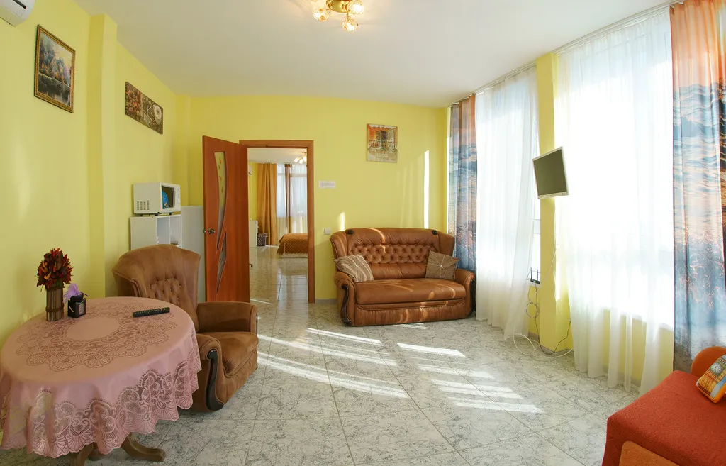 Смена постельного белья осуществляется 1 раз в 5 дней, смена полотенец – через 3 дня. Уборка производится через 1 день. Возможна дополнительная уборка по требованию. По желанию возможно 3-х разовое комплексное питание, только завтрак или полупансион. В 20-ти метрах от отеля «седьмой сектор» находится лечебный корпус санатория, где можно пройти комплексное обследование и приобрести курсовку на лечение (грязи, физиотерапия, ванны, соляная комната), первичная консультация врача в стоимость курсовки не включена.