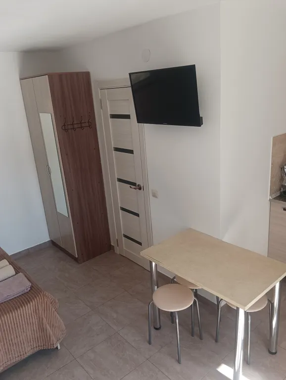 Сдаются номера-студии на 2-4 человека. В каждом номере кухня со всем необходимым, тв, вайфай, кондиционер, санузел. В каждом номере есть балкон со столом и стульями для отдыха. Номера на 2 этаже с видом на море и горы. На территории есть беседка с мебелью и мангал. Стоянка для авто.