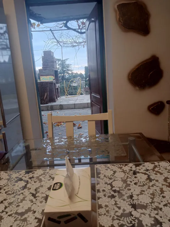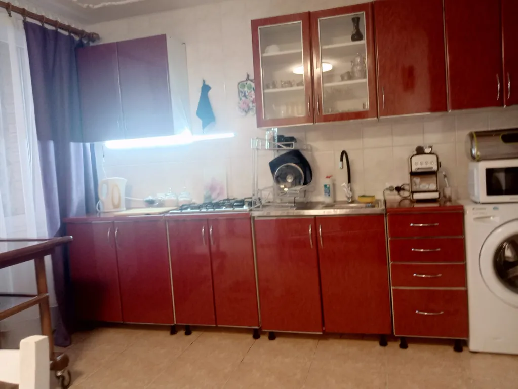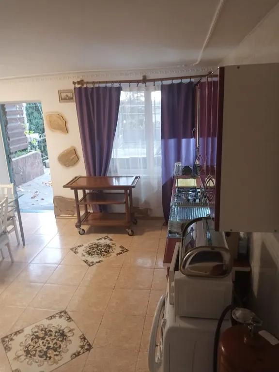 Первый этаж - кухня с большим раскладным мягким уголком и ванная.