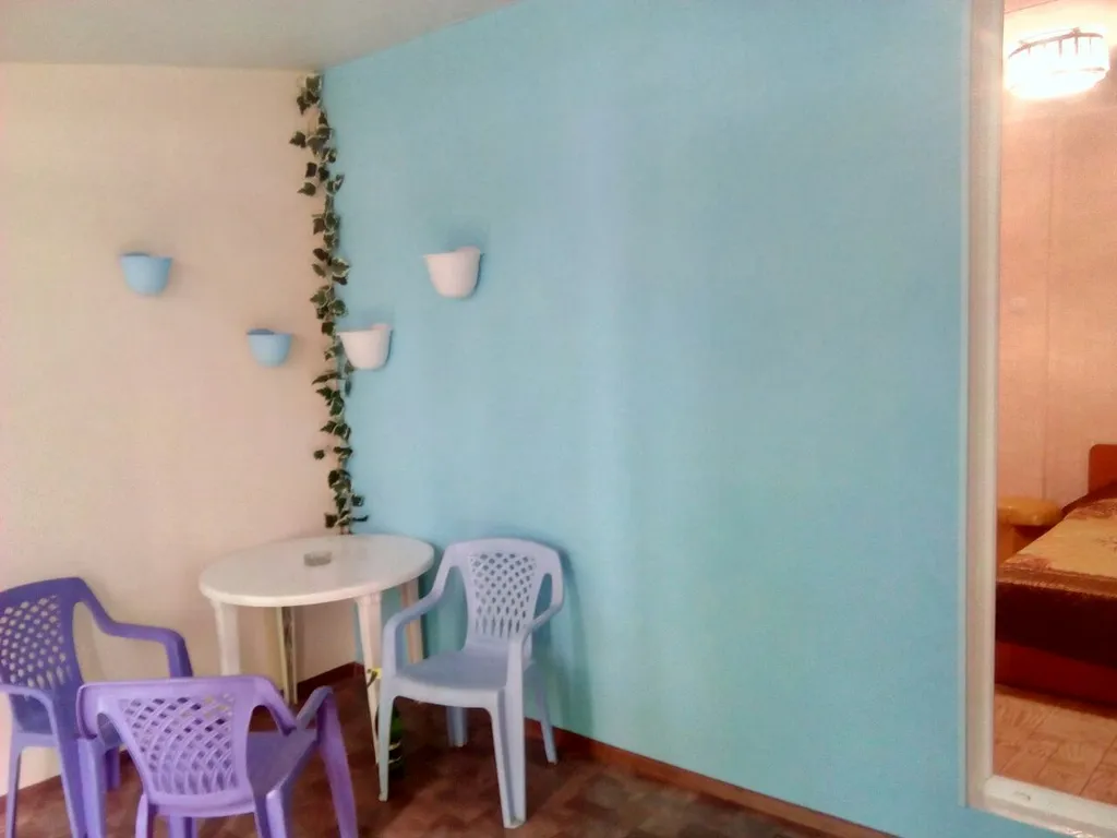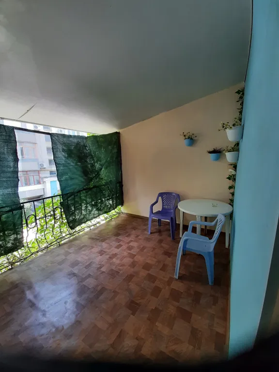2 комнаты, отличный балкон-беседка, санузел, душ, тв, интернет, горячая и холодная вода, утюг полностью укомплектованная кухня(посуда, свч печь, холодильник и т.д.), кондиционер, вентилятр, мангал.