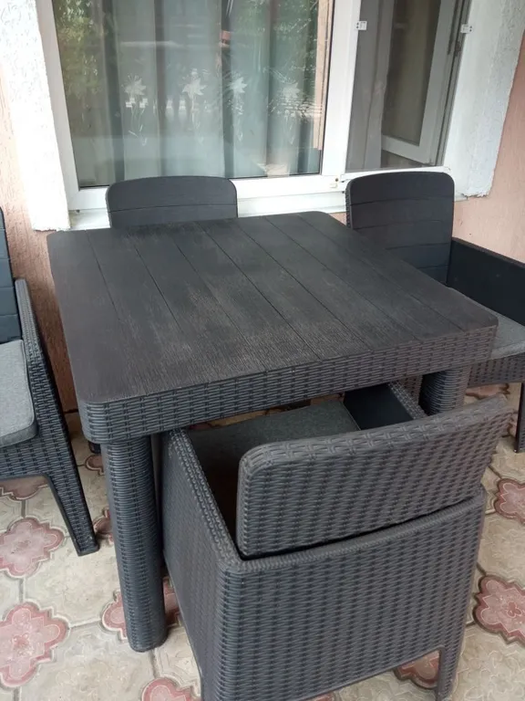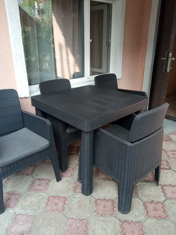 На территории гостевого дома находится отдельно стоящий двухкомнатный домик, который сдается под ключ. В одной комнате в наличии кровать (1400х1900), диван «Малютка», шкаф, комод, телевизор. Во второй комнате (проходная) диван-кровать, шкаф. На каждого гостя выдаются полотенце и плед. Смена белья один раз в 5-7 дней. В ванной комнате ванна, унитаз, стиральная машинка, умывальник. На кухне плита газовая четырёх конфорочная, гарнитур-кухня, стол, стулья, микроволновая печь, чайник, холодильник двухкамерный с морозильной камерой внизу LG. В наличии вся посуда для приготовления и приема пищи. На улице, у домика, установлен стол и стулья, зона отдыха. Можно принимать пищу на свежем воздухе. В домике летом прохладно. Установлено два вентилятора. Вода холодная-горячая постоянно, не зависим от центрального водоснабжения. Уборка домика после выезда.